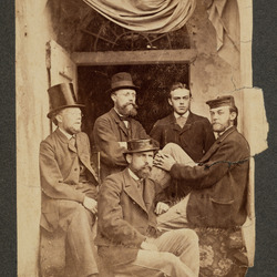 Bildet av de fem mennene ble fotografert i Roma 1866. På denne litt slitte albuminkopien mangler høyre siden av bildet. På originalen ser en at Roma 1866 ...