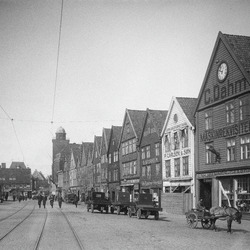Bryggefronten,fra og med nordre Svensgården, sett nordvestover etter brannen i 1955