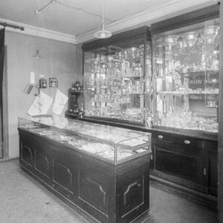 Kvinner i arbeid, Women at work, Kvinne, Woman, Monter, Schowcase, Ekspeditør, Salesman, Butikkinteriør, Counter, Disk, Gullsmed, Goldsmith, Guldsmed- & juvelerforretninger