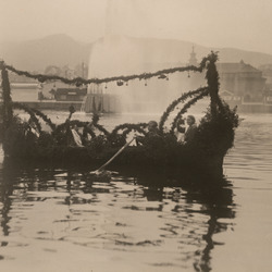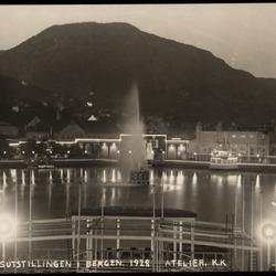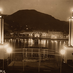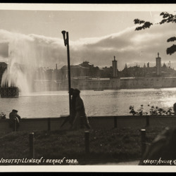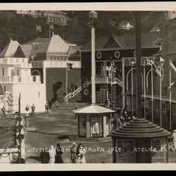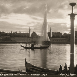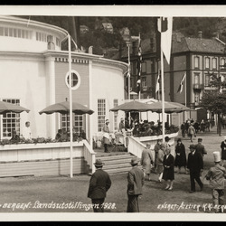 Sangernes Utlodningshus ved Lille Lungegårdsvannet. Landssangerstevnet 1926. Huset er tegnet av Olai Schumann Olsen og står i dag på Øvre Hopsvegen 17