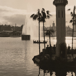 Repro av et bilde som viser Bergen Elektrisitetsverks omformerstasjon ved Lille Lungegårdsvann bygget 1912