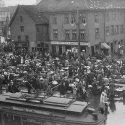 Del av anonym samling snapshot fra Bergen 1911. "Folk i farten"