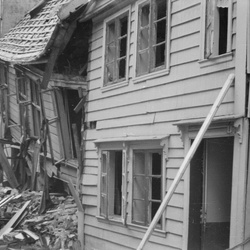 Andre verdenskrig, Trehusbebyggelse by, Husruin