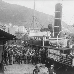 By- og småsteder, Dampskip, Steamship, Tradisjonelle båttyper, Traditional boats, Festning, Fort, Kaianlegg, Wharf, Emigrant ship, Emigrantskip