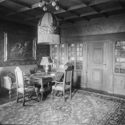 Interiør, Villa, Hagemøbler, Vase, Taklampe, Teppe, Vinterhage, Rottingstol, Rottingbord, Blomsterurne, Rottingsofa