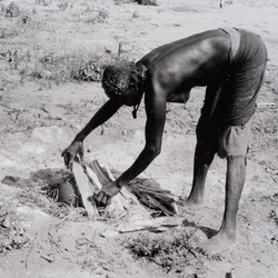Forskning, Research, Mann, Man, Bål, Fire, Feltarbeid, Arkeologi, Handicraft, Husflid og kunsthåndverk