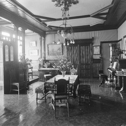 Hotel interior, Hotellinteriør, Stue, Bord, Table, Stol, Taklampe, Ovn, Klaver, Piano