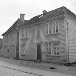 By- og småsteder, Bolighus, House, Trehusbebyggelse by, Brostein, Cobblestone, Kumlokk, Manhole cover, Trikkeskinner