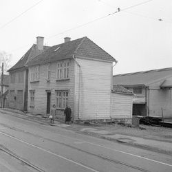 Kvinne, Woman, Bolighus, House, Trehusbebyggelse by, Trikkeskinner