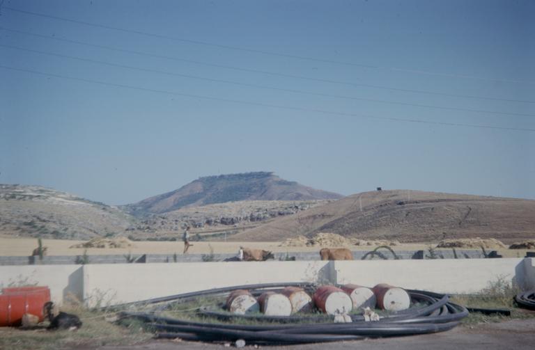 Landskap, Landscape, Vei, Road, Cow, Ku, Colour photography, Fargefotografi, FN, UN, UNRWA, الأونروا, Lysbilde, 35 mm, Oil drum, Oljefat