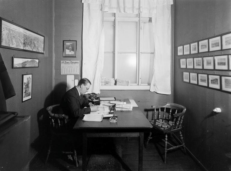 Kvinner i arbeid, Women at work, Avis, Newspaper, Kvinne, Woman, Kontor, Office, Telefon, Telephone, Skrivebord, Regnemaskin, Bladekspeditioner