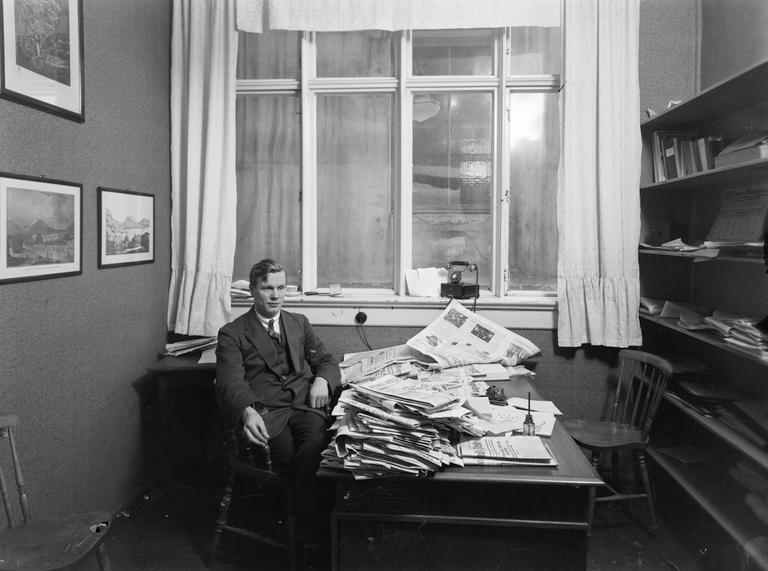 Arbeider, Worker, Avis, Newspaper, Vindu, Window, Printing house, Trykkeri, Bladekspeditioner
