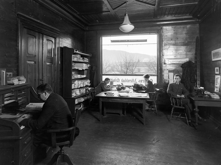 Avis, Newspaper, Taklampe, Printing house, Trykkeri, Settekasse, Bladekspeditioner
