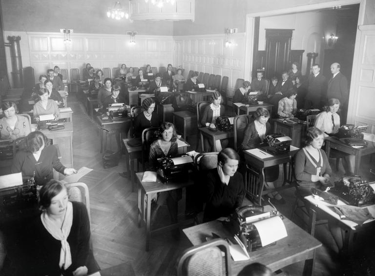 Mann, Man, Kvinner i arbeid, Women at work, Avis, Newspaper, Kvinne, Woman, Skrivemaskin, Bladekspeditioner