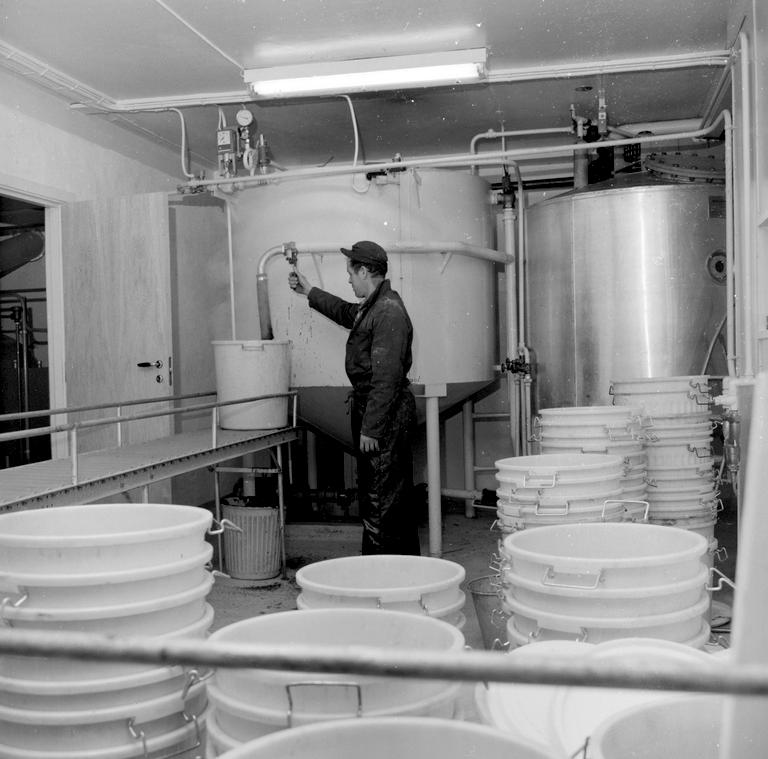 Interiør, Interior, Mann, Man, Arbeider, Worker, Tank, Spann, Bucket, Press photography, Pressefotografi, Mellomformat, Medium format
