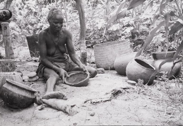Forskning, Research, Kvinne, Woman, Feltarbeid, Arkeologi, Colour photography, Fargefotografi, Trær, Sosialantropologi, Jar, Krukke