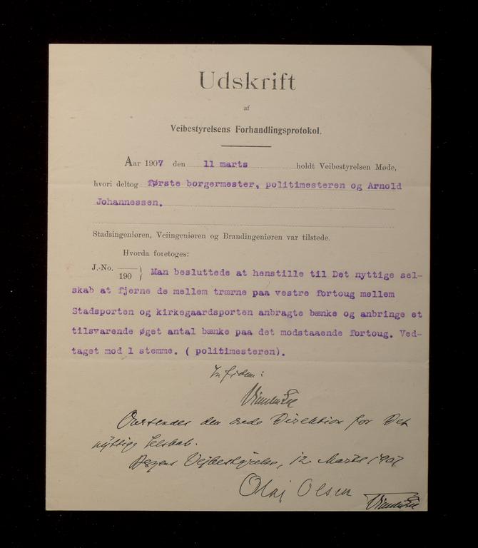 Lokalhistorie, Det Nyttige Selskab, Rettsdokumenter, Brev, Letter, Road construction, Veiarbeid