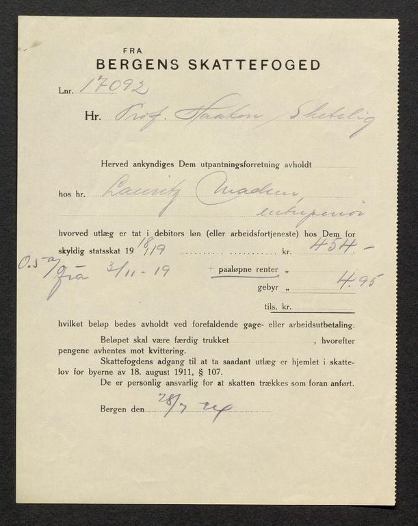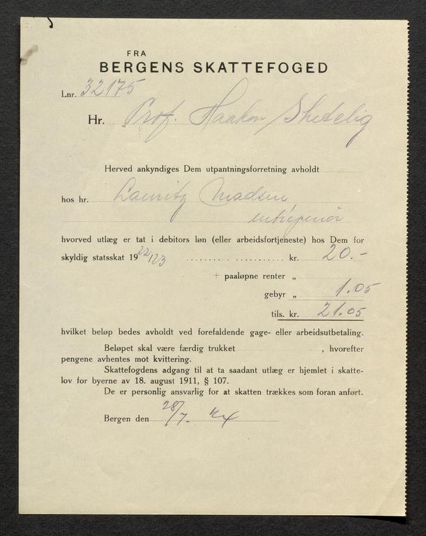 Lokalhistorie, Det Nyttige Selskab, Christie-monument, Økonomi, Skatt, Brev, Letter, Skattefogd