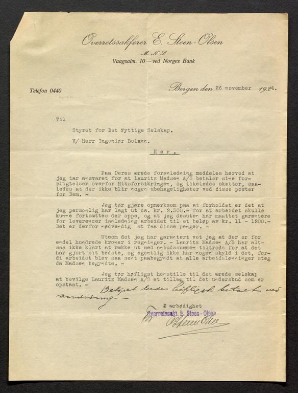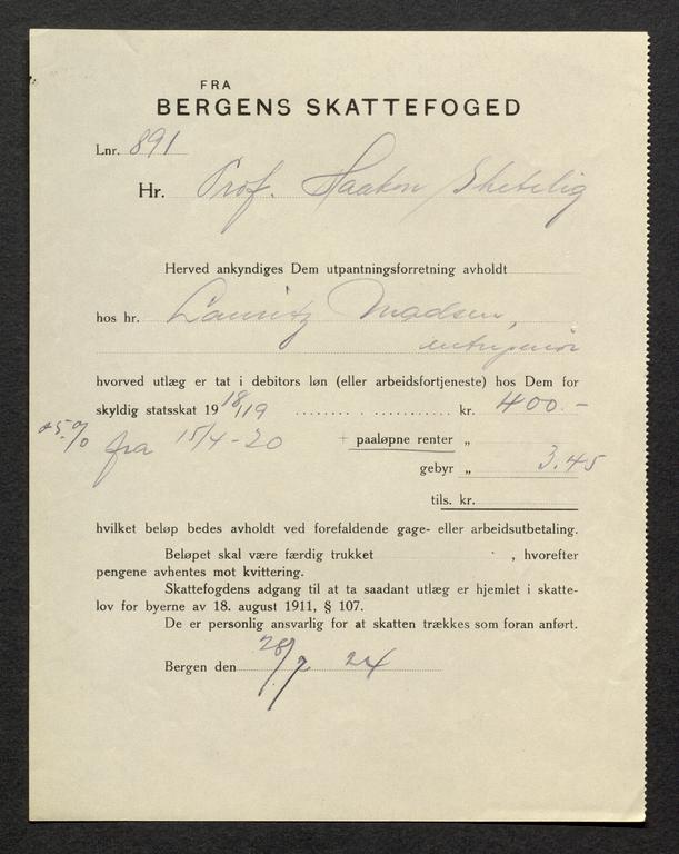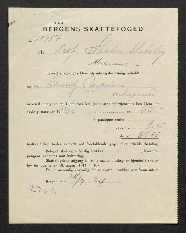 Bergens museum, Lokalhistorie, Det Nyttige Selskab, Christie-monument, Økonomi, Skatt, Brev, Letter