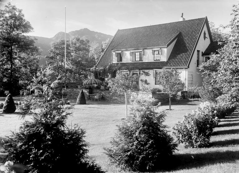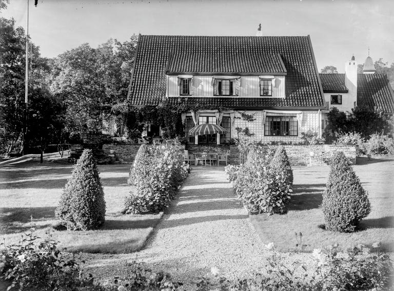 Architecture and building practice, Arkitektur og byggeskikk, Sommer, Summer, Villa, Mansion, Hage, Garden, Bolighus, House, Parasoll, Garden furniture, Hagemøbler, Planter