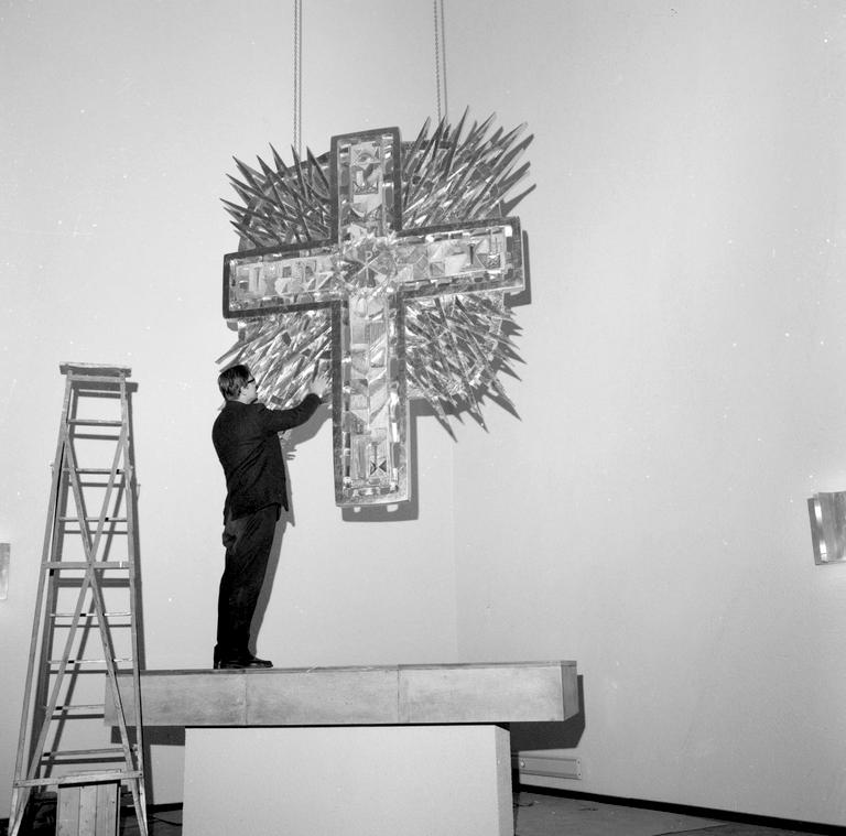 Kirke, Church, Mann, Man, Veggdekorasjon, Alter, Kors, Cross, Press photography, Pressefotografi, Mellomformat, Medium format