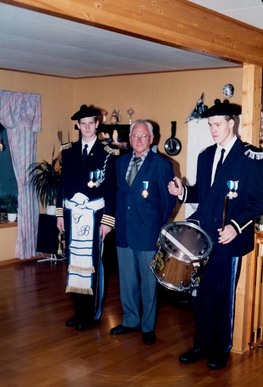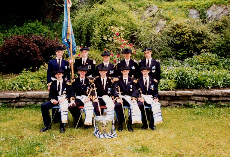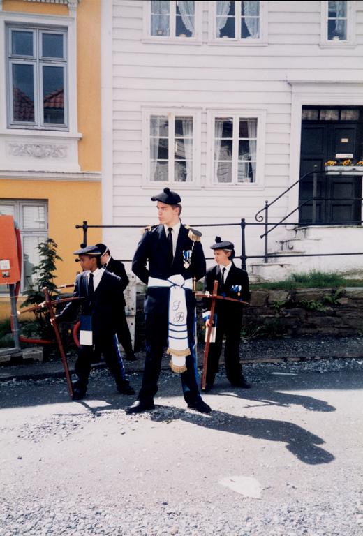 Bow corps boy, Buekorpsgutter, Sjef, Bow corps uniform, Buekorpsuniform, Medal, Medalje, Offiser, Officer, Fane, Banner, Buekorpssjal, Gallatromme, Faneoffiser